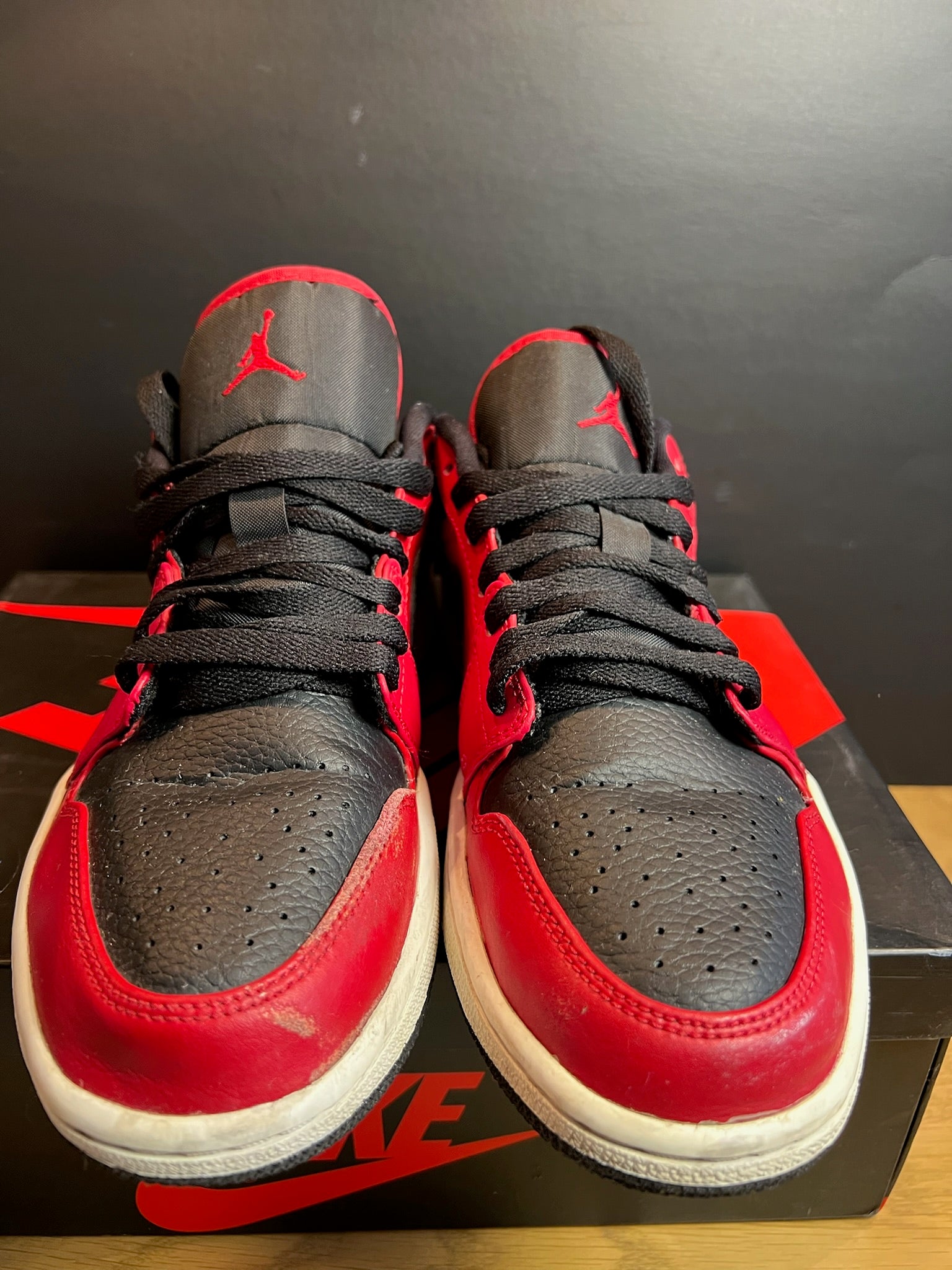 Nike Sneaker Air Jordan 1 Low Rot Schwarz Weiss ·Gr 42· Herren Retro Basketball