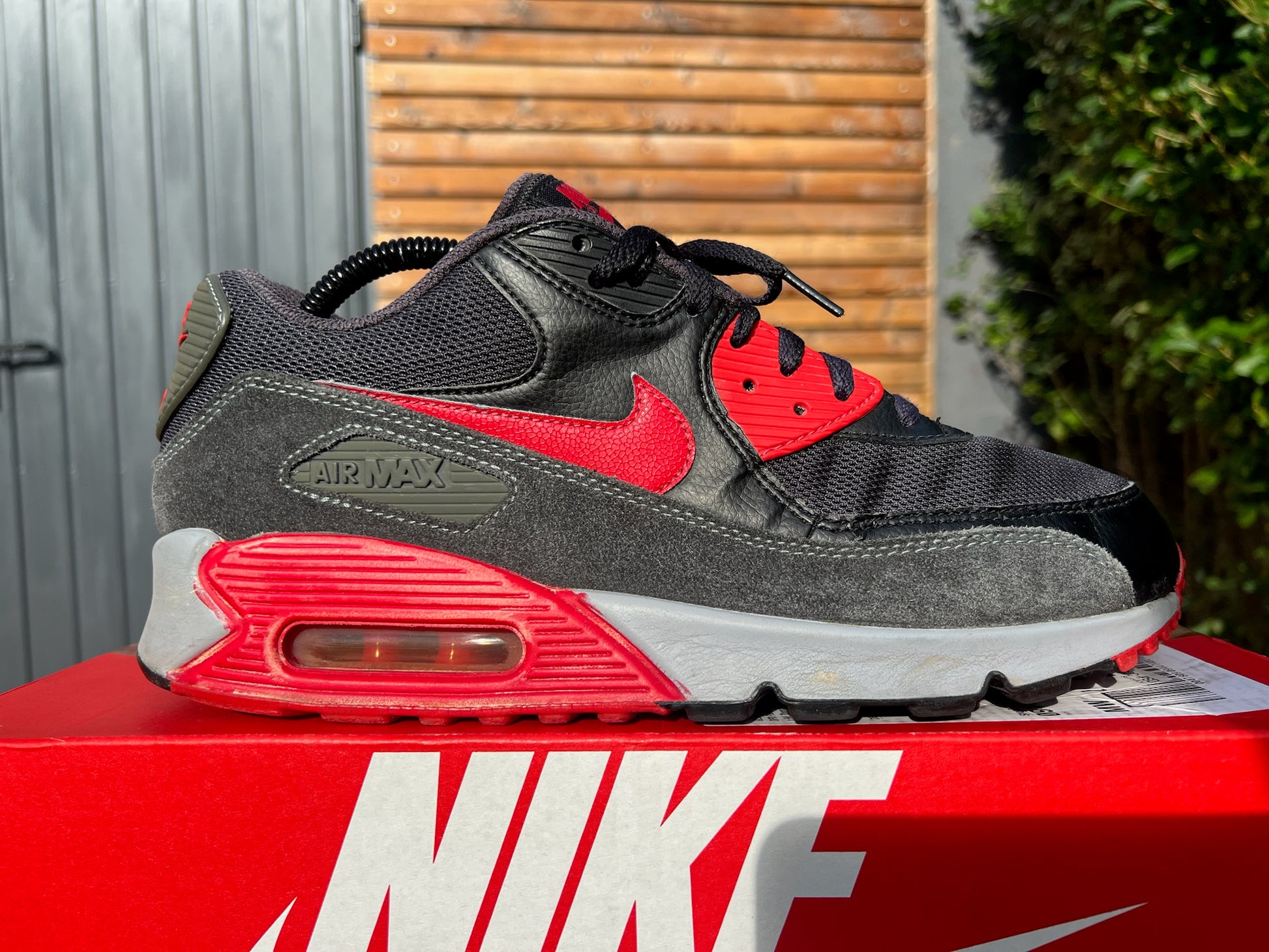 Nike Sneaker Air Max 90 Essential Schwarz Grau Rot ·Gr 44· Herren Retro Running