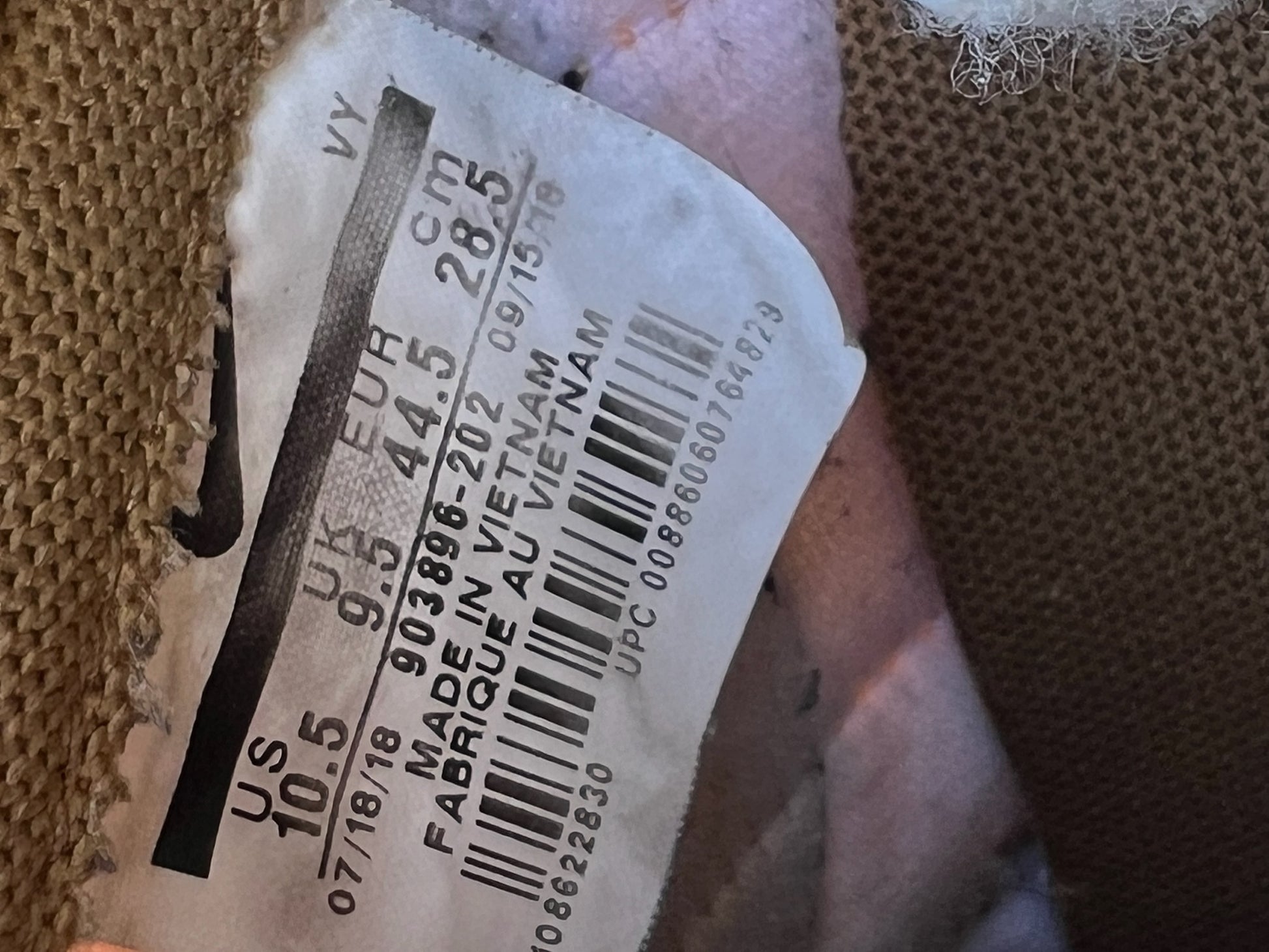 Zum Verkauf steht ein Nike Air Vortex in Golden Beige/Black-Desert Ore-Sail. Dieser Sneaker kombiniert Wildleder, Mesh und Ripstop-Nylon für einen klassischen Look mit modernem Komfort. Die Air-Sole-Einheit sorgt für eine hervorragende Dämpfung bei jedem Schritt. Der Schuh bietet Atmungsaktivität und Strapazierfähigkeit. Zustand: Gebraucht, siehe Fotos. Details: * Größe: 44.5 EU (UK 9.5, US 10.5) * Artikelnummer: 903896-202 * Herkunft: Vietnam Ideal für den Alltag oder sportliche Aktivitäten. Lieferumfang: Der Schuh wird ohne Originalverpackung versendet. Hinweis: Alle Bilder zeigen den tatsächlichen Artikel. Bei Fragen oder für weitere Details kontaktieren Sie mich gerne! Suchbegriffe: Nike, Air Vortex, Beige, Sneaker, Herren, Sportschuhe, Wildleder
